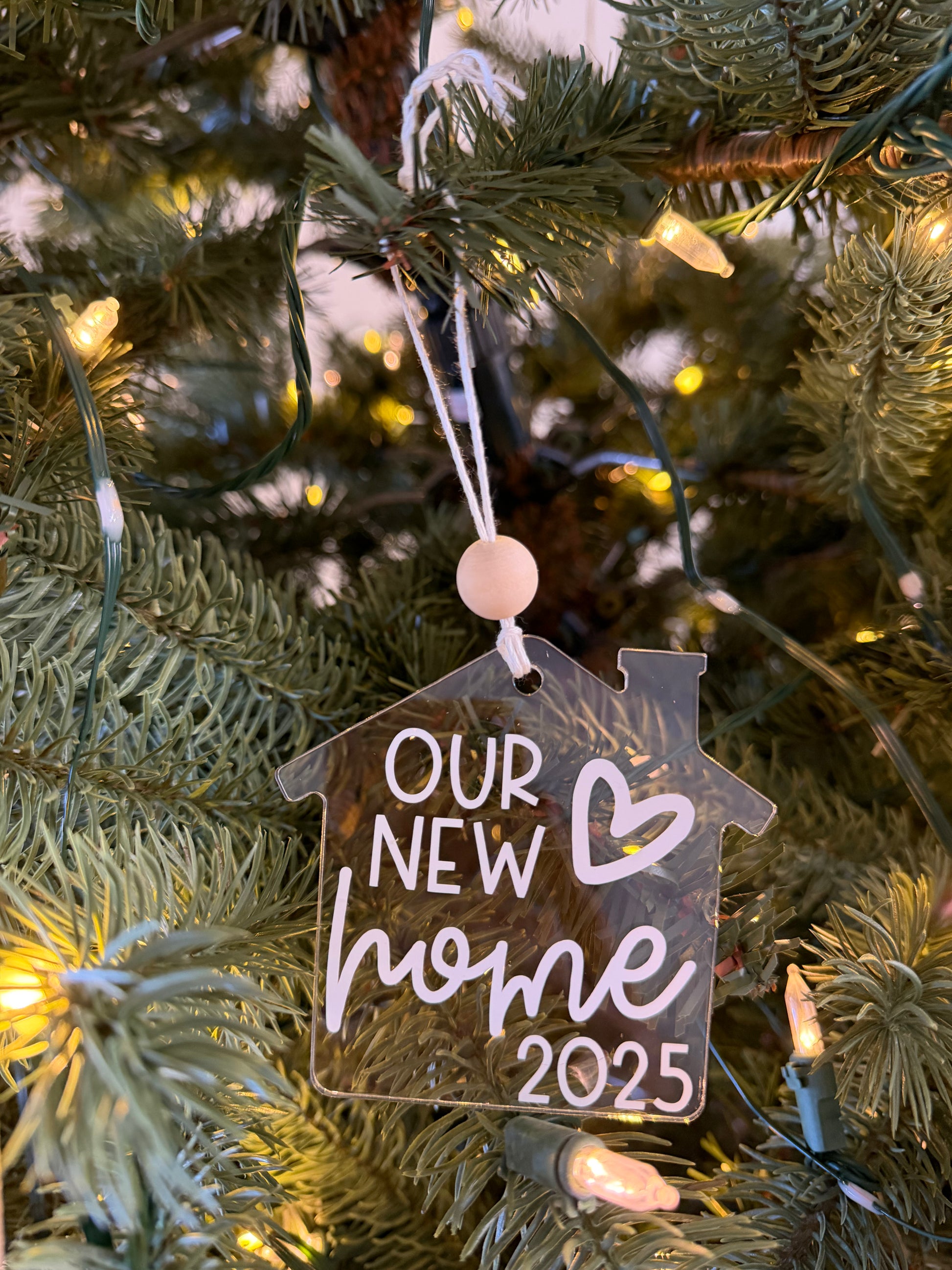 Celebrate new beginnings with this 3.5” clear acrylic house-shaped ornament—perfect for new homeowners, first Christmas in a new home, real estate client gifts, or holiday décor. Lightweight, durable, and crystal-clear for a beautiful personalized keepsake.